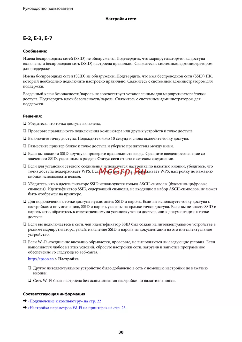 ❏ Если вы вводили SSID вручную, проверьте правильность ввода. Сравните введенное значение со