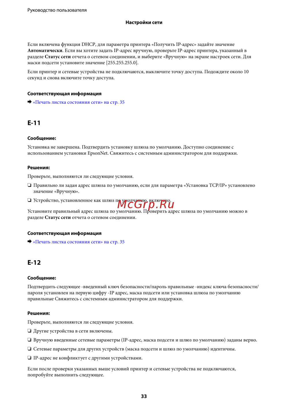 использованием установки EpsonNet. Свяжитесь с системным администратором для поддержки.