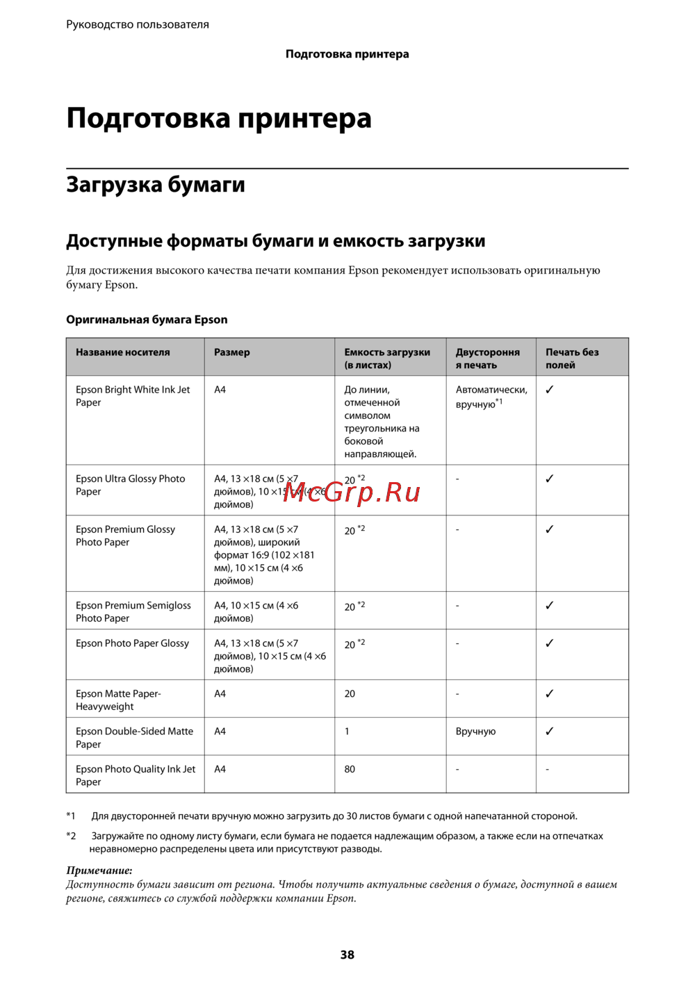 Доступность бумаги зависит от региона. Чтобы получить актуальные сведения о бумаге, доступной в вашем