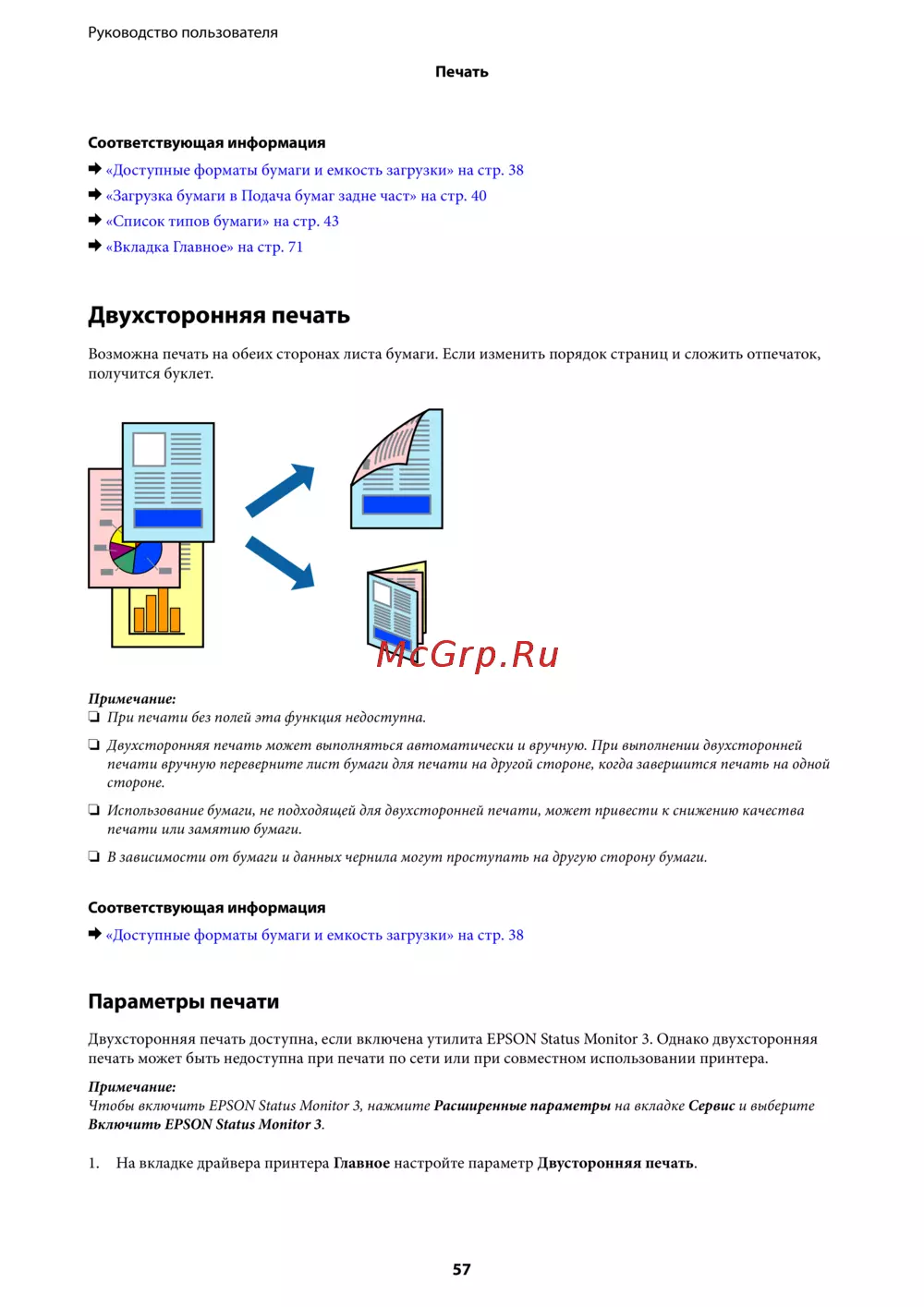Двухсторонняя печать доступна, если включена утилита EPSON Status Monitor 3. Однако двухсторонняя