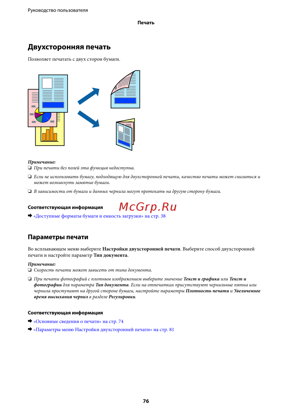 & «Доступные форматы бумаги и емкость загрузки» на стр. 38