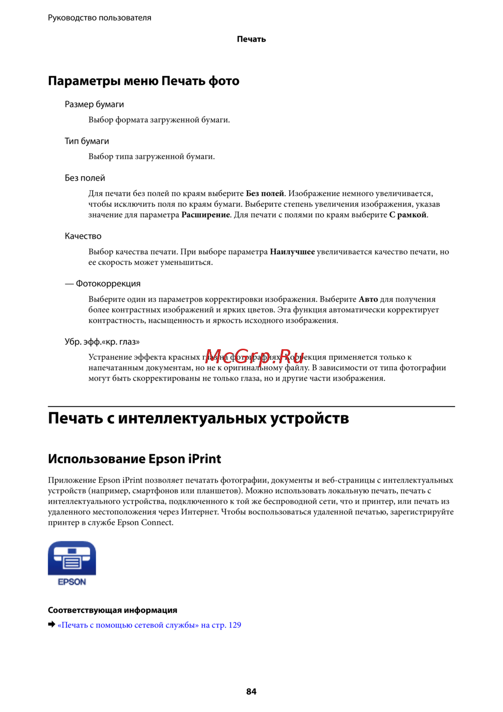 & «Печать с помощью сетевой службы» на стр. 129