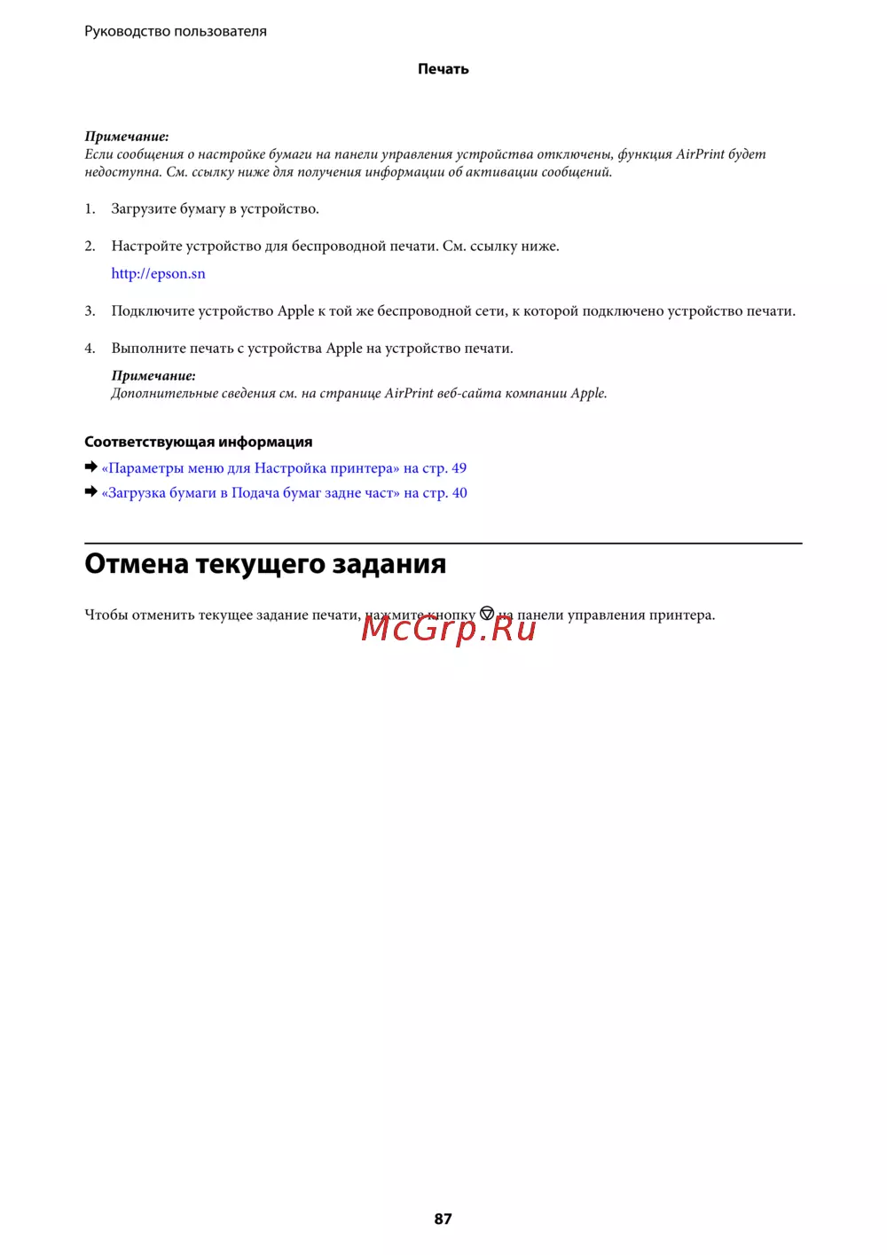Дополнительные сведения см. на странице AirPrint веб-сайта компании Apple.