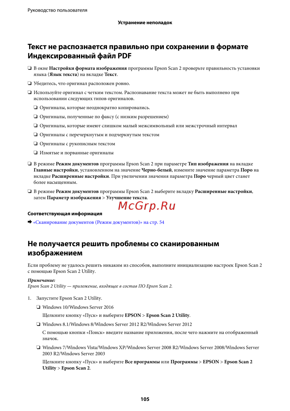 - Текст не распознается правильно при сохранении в формате индексированный файл pdf p.105