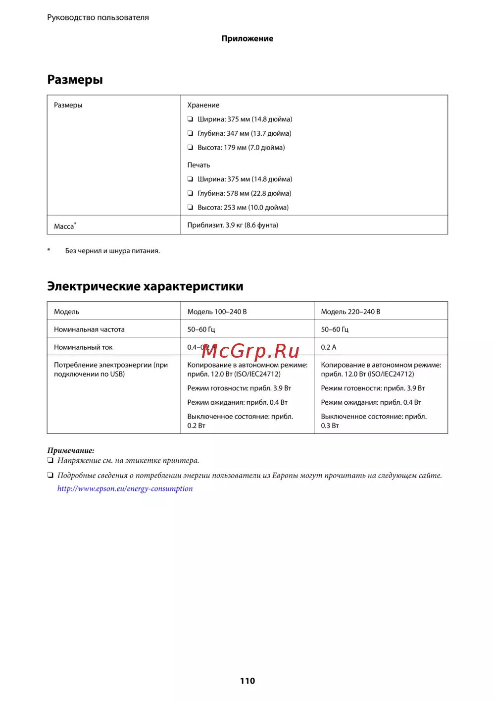 - Подробные сведения о потреблении энергии пользователи из европы могут прочитать на следующем сайте p.110