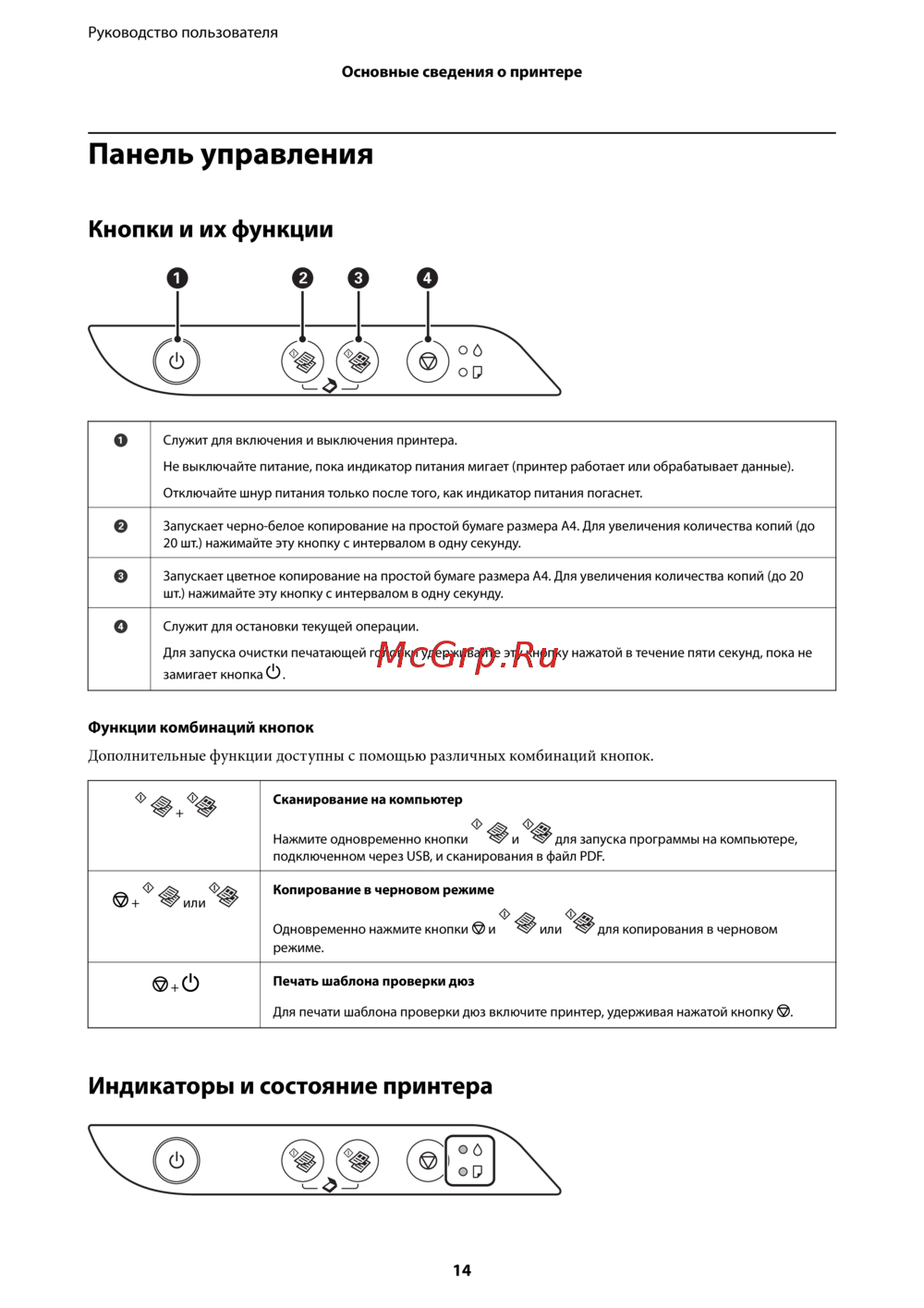 Epson L3101 — управление функциями принтера: кнопки и их назначения [14/122]