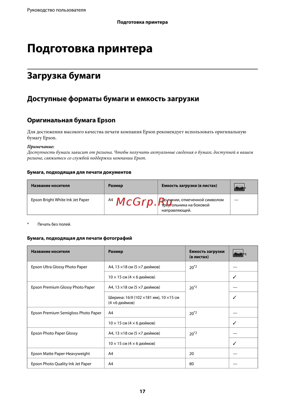 - Прочтите инструкции поставляемые вместе с бумагой p.18