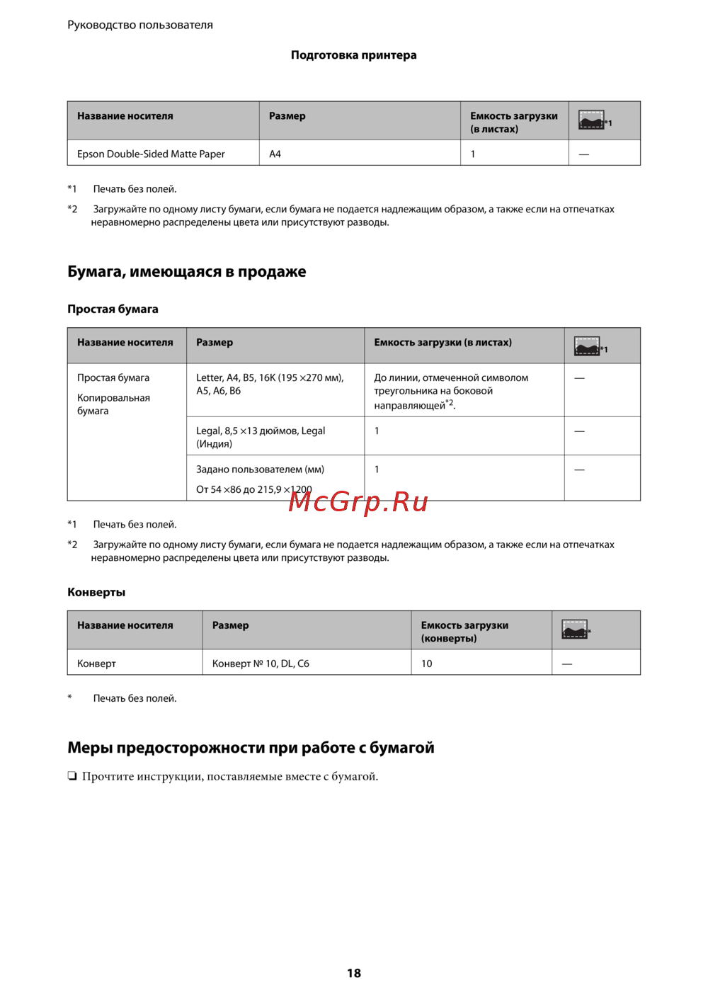 - Прочтите инструкции поставляемые вместе с бумагой p.18
