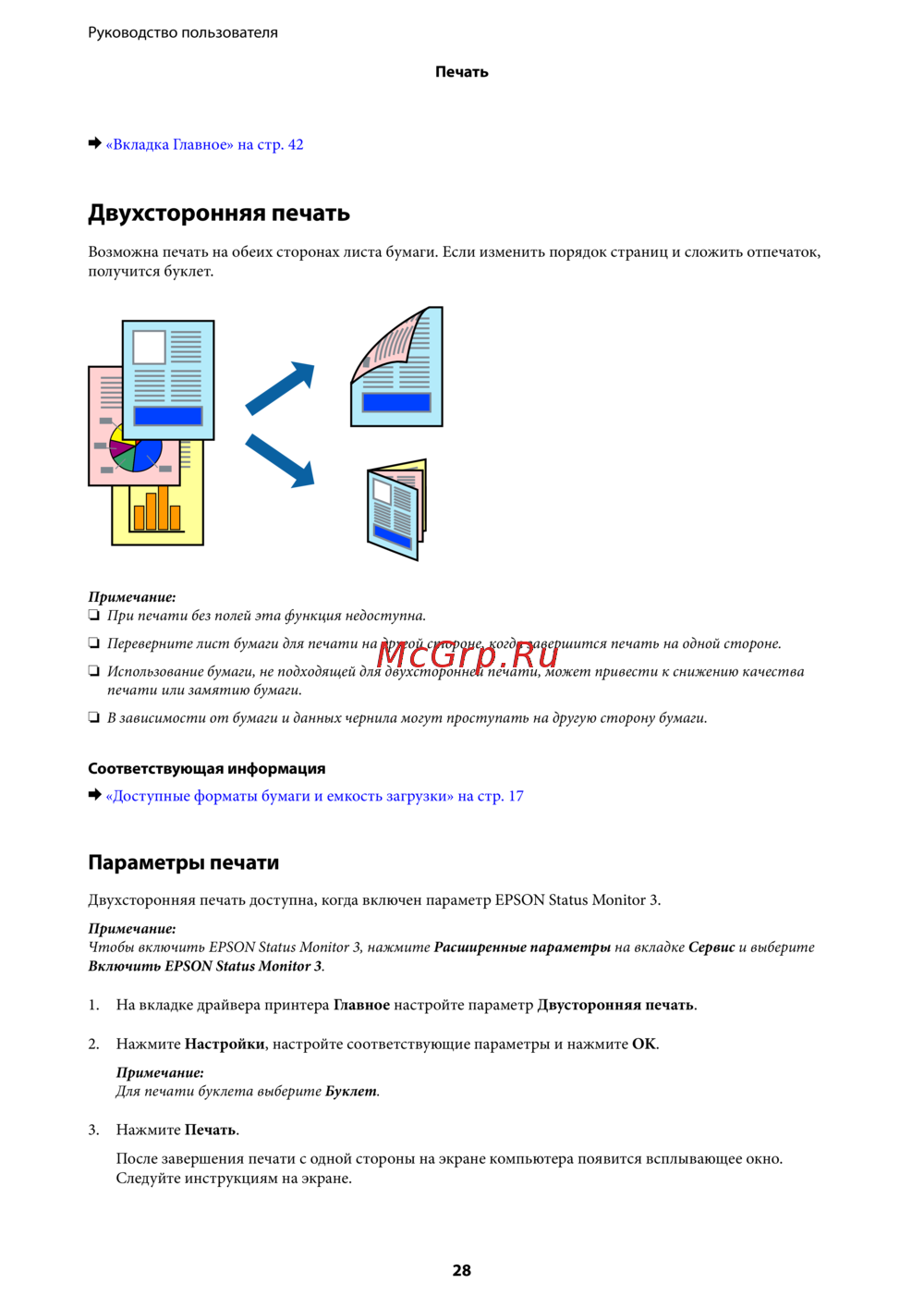 Двухсторонняя печать доступна, когда включен параметр EPSON Status Monitor 3.