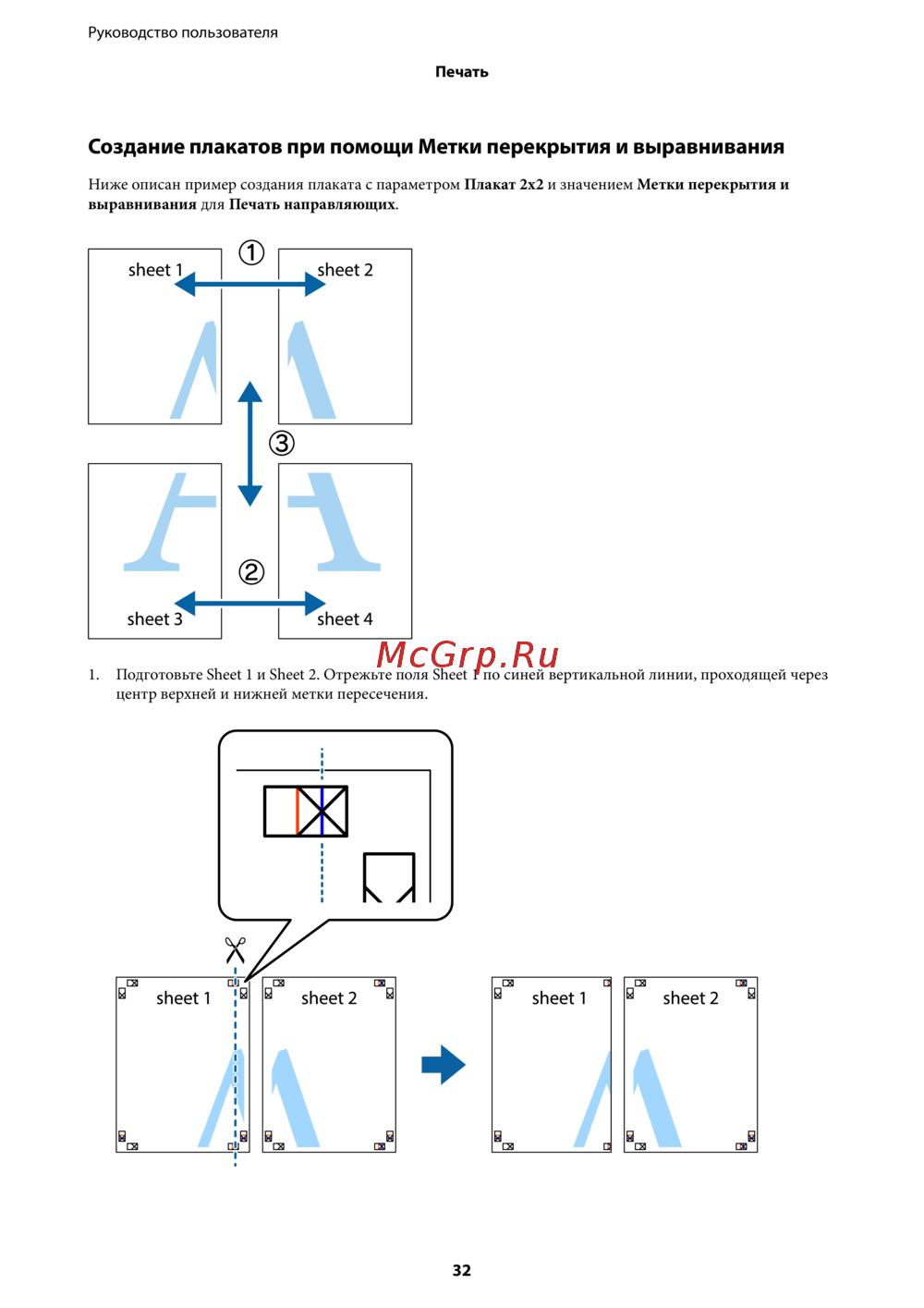 Epson L3101 [32/122] Создание плакатов при помощи метки перекрытия и выравнивания