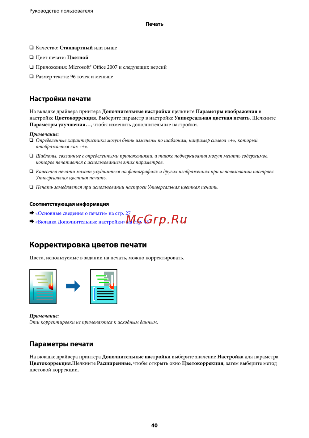 настройке Цветокоррекция. Выберите параметр в настройке Универсальная цветная печать. Щелкните