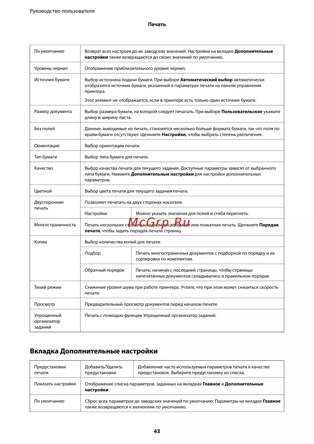 типа бумаги. Нажмите Дополнительные настройки для настройки дополнительных