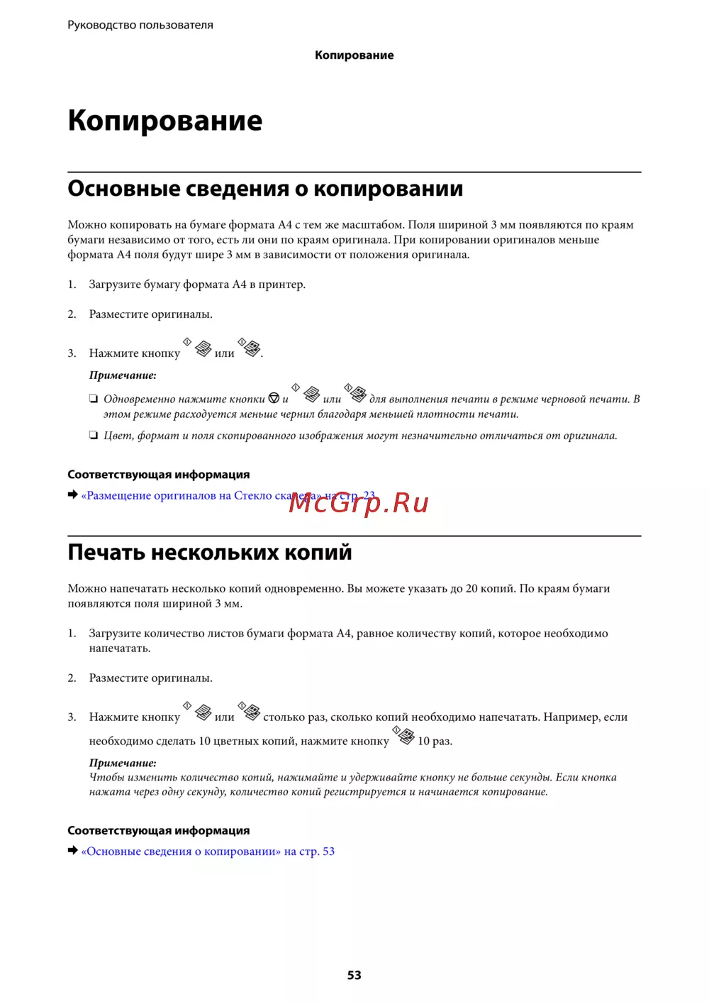 Можно напечатать несколько копий одновременно. Вы можете указать до 20 копий. По краям бумаги