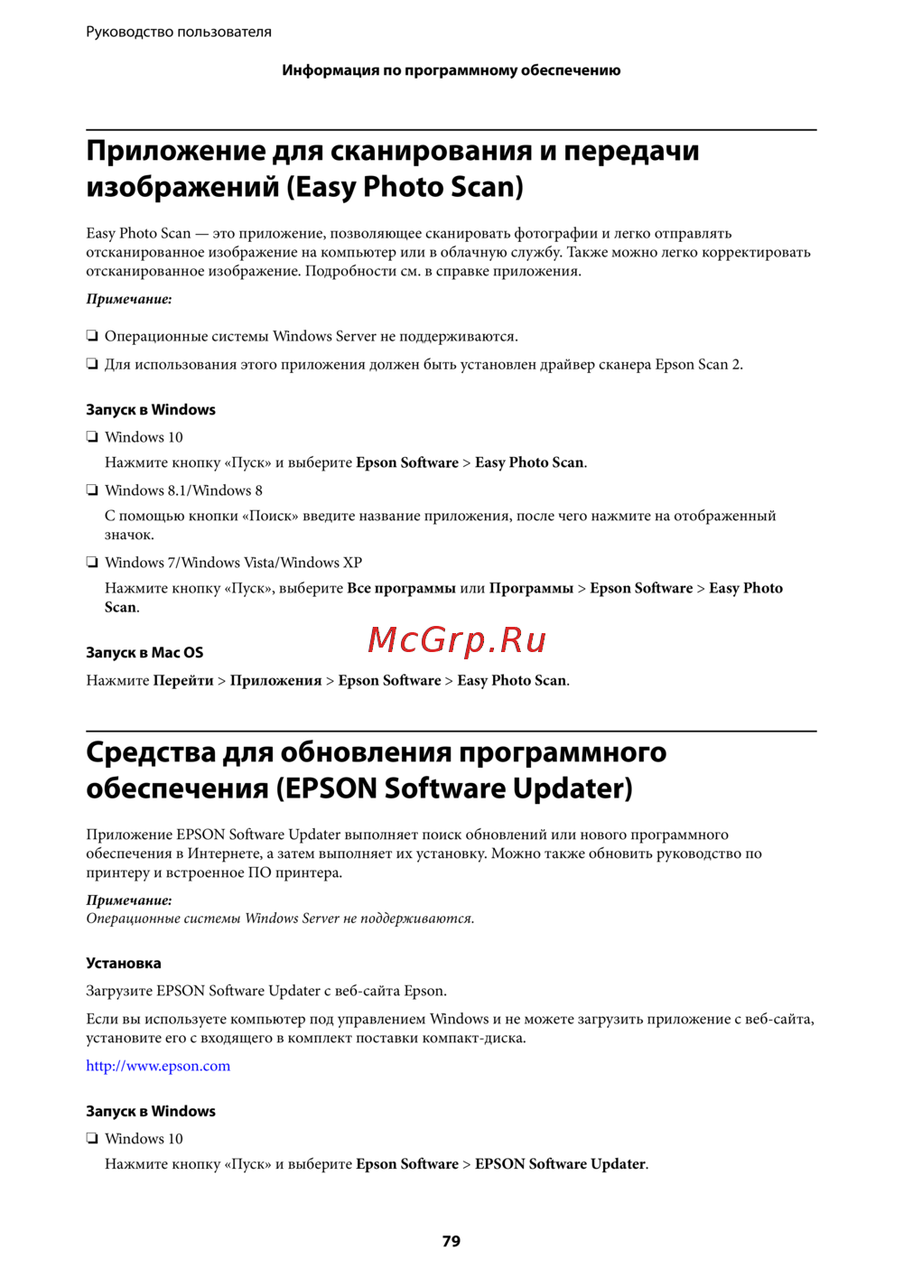 Загрузите EPSON Soware Updater с веб-сайта Epson.