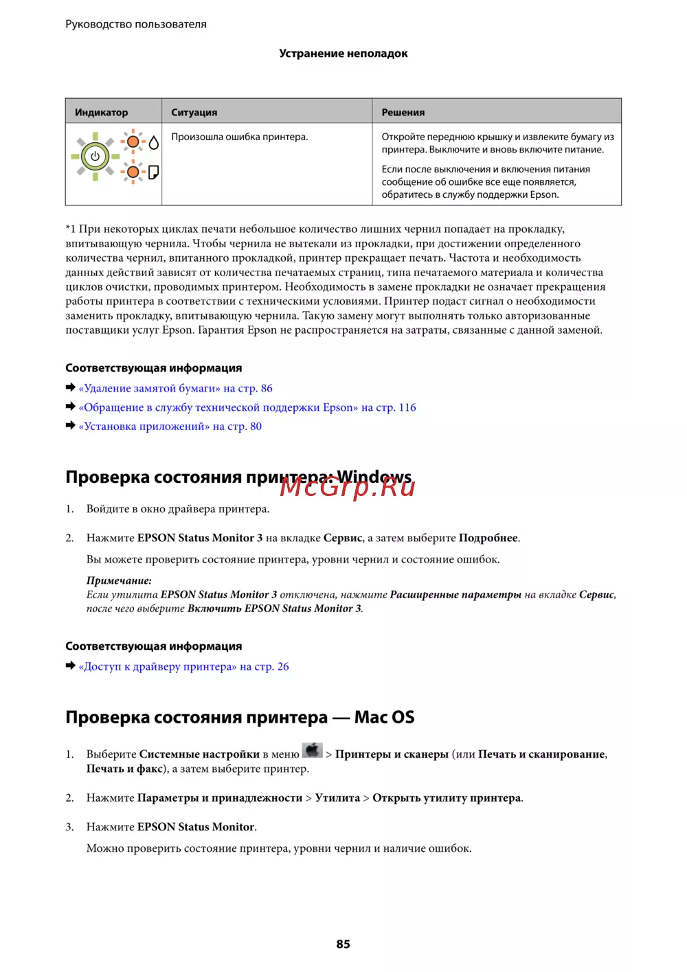 Epson L3101 — как устранить ошибки принтера и проверить его состояние [85/122]