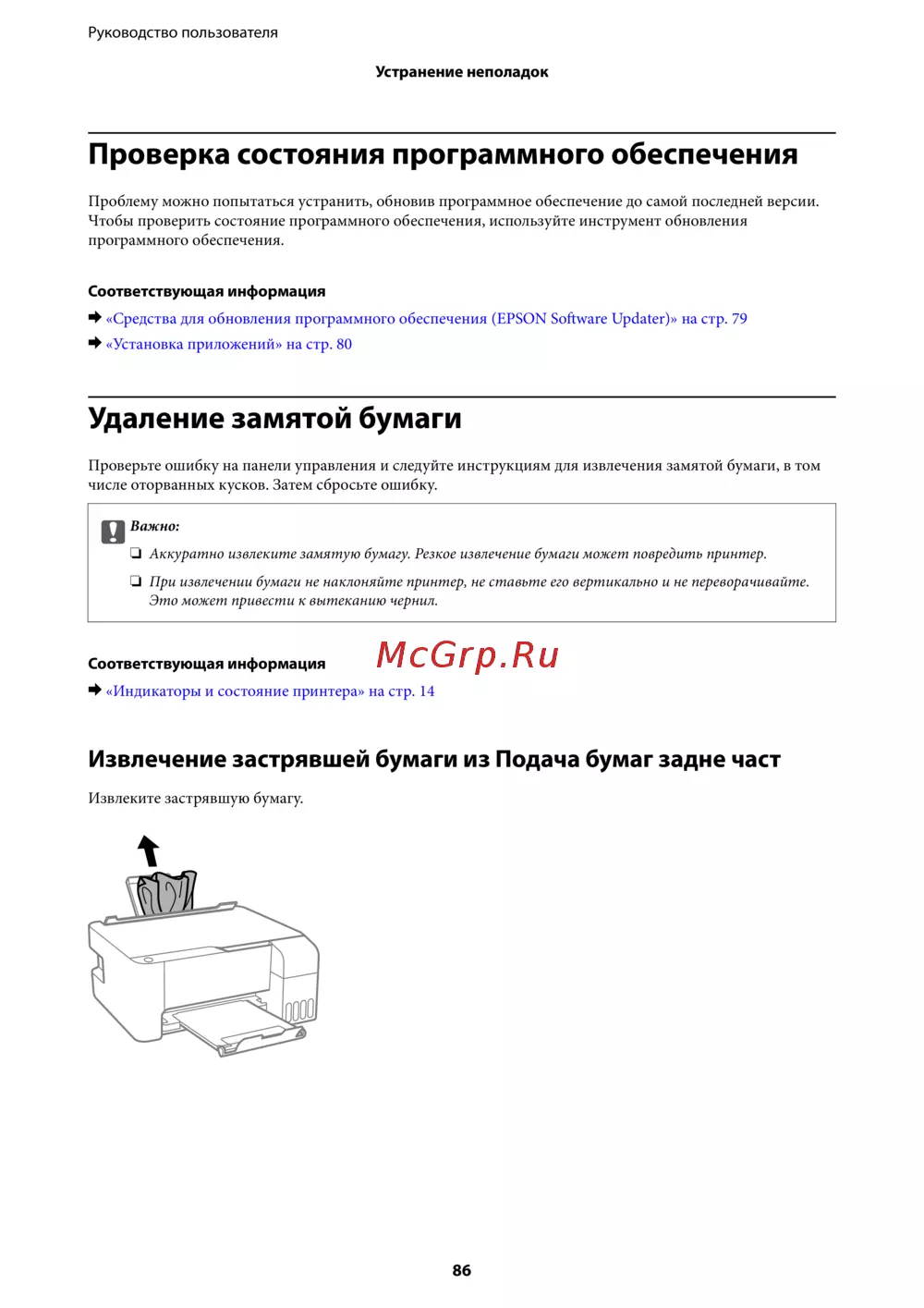 - Удаление замятой бумаги на стр 86 p.16