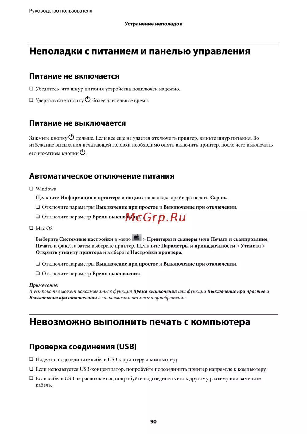 Epson L3101 — устранение неполадок с питанием и управлением принтером [90/122]