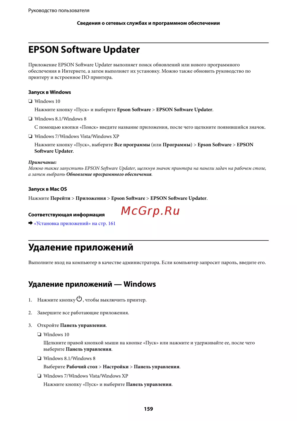 Нажмите кнопку «Пуск» и выберите Epson Soware > EPSON Soware Updater.