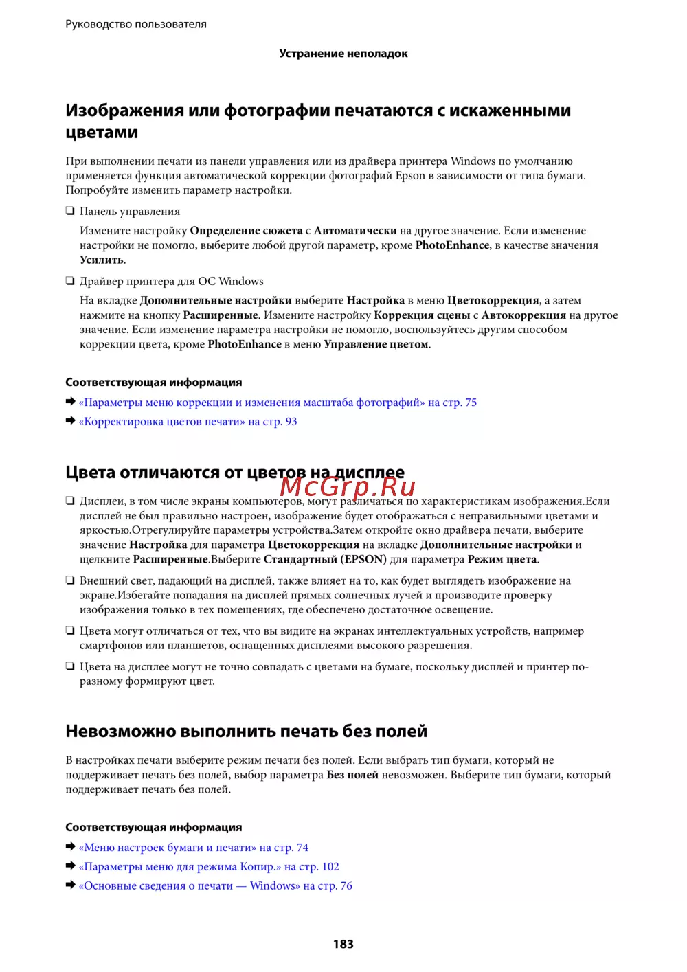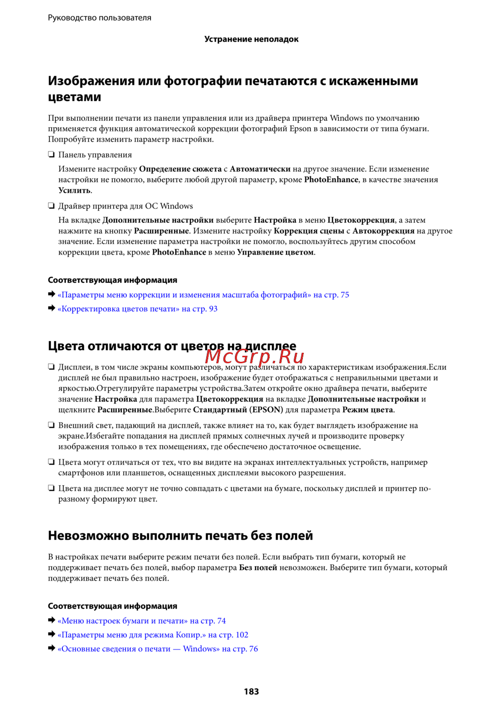 ❏ Цвета на дисплее могут не точно совпадать с цветами на бумаге, поскольку дисплей и принтер по-