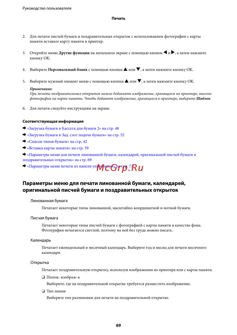 Epson L7160 — инструкция по печати писчей бумаги и открыток с фотографиями [69/212]