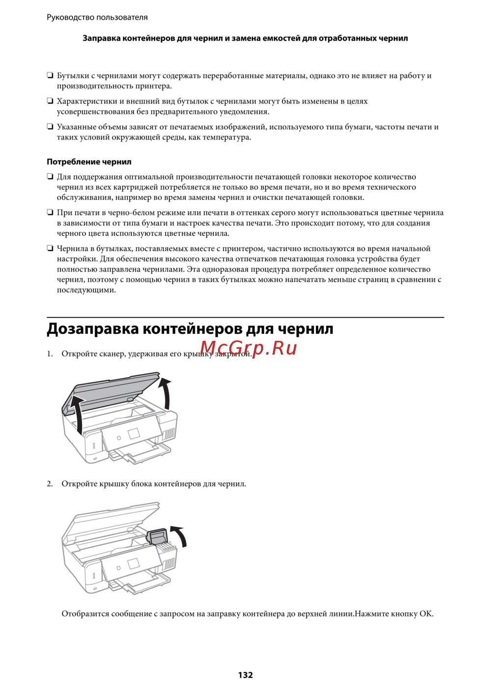 - Заправка контейнеров для чернил и замена емкостей для отработанных чернил p.6