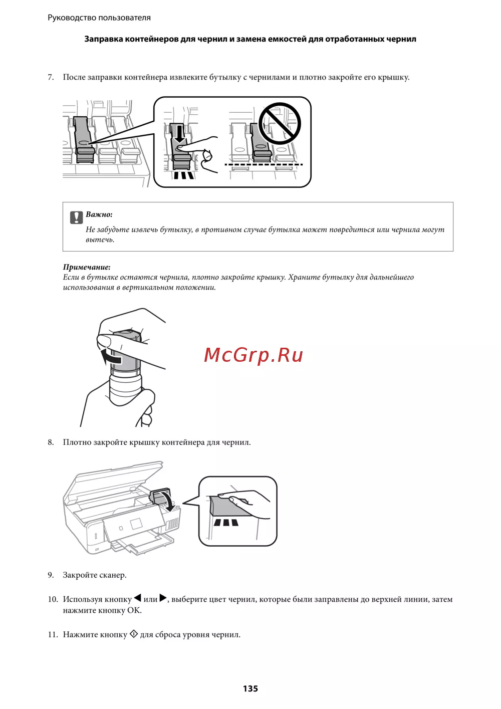 Epson L7180 — инструкция по заправке контейнеров для чернил и их замене [135/222]