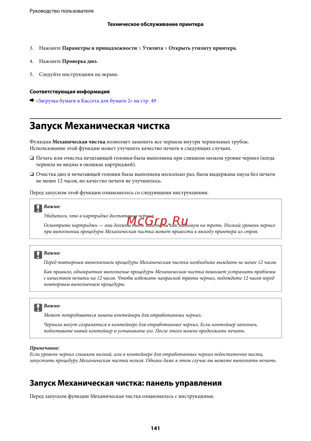 запустить процедуру Механическая чистка нельзя. Однако даже в этом случае вы можете выполнять печать.