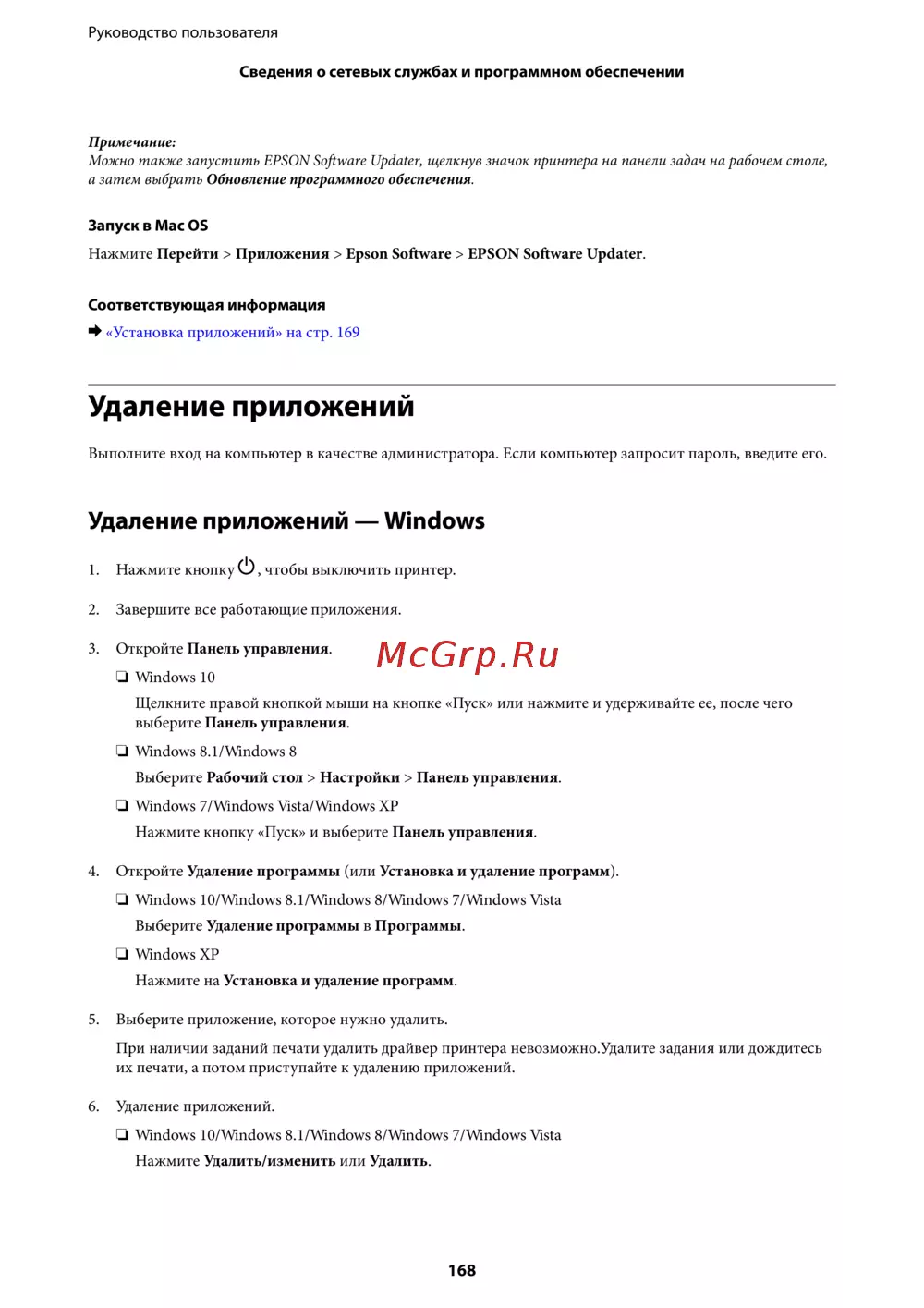 Epson L7180 — инструкция по обновлению и удалению программного обеспечения принтера [168/222]