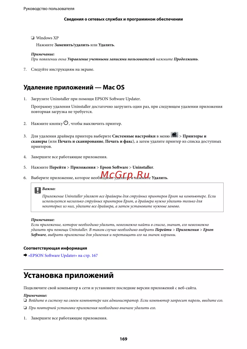 & «EPSON Soware Updater» на стр. 167