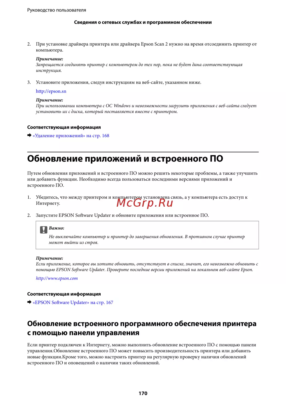 помощью EPSON Soware Updater. Проверьте последние версии приложений на локальном веб-сайте Epson.