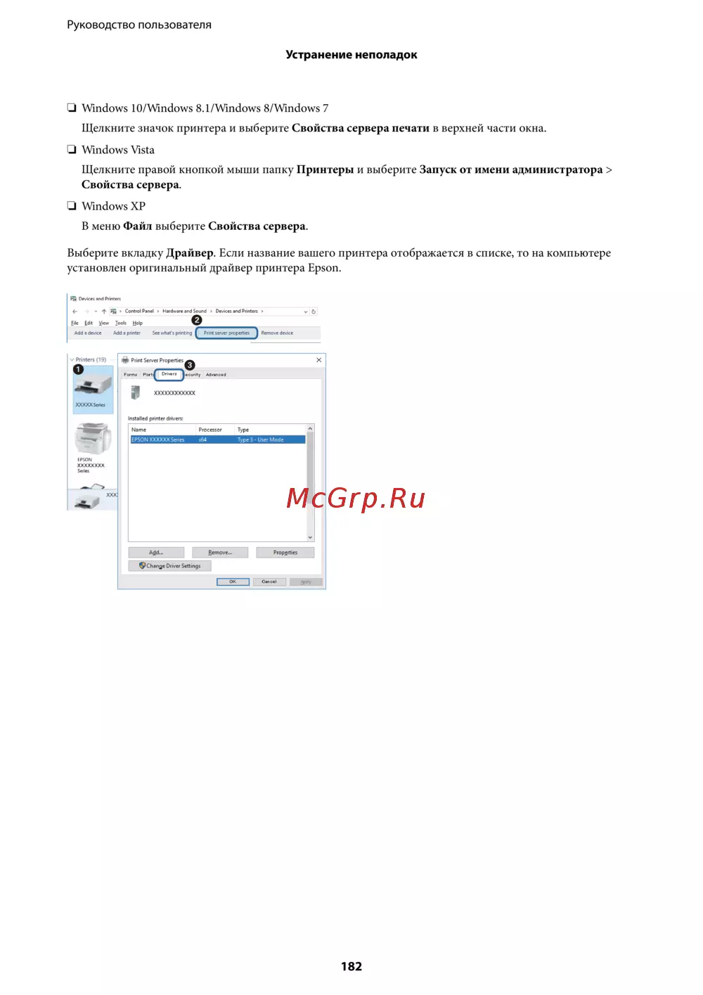 Выберите вкладку Драйвер. Если название вашего принтера отображается в списке, то на компьютере