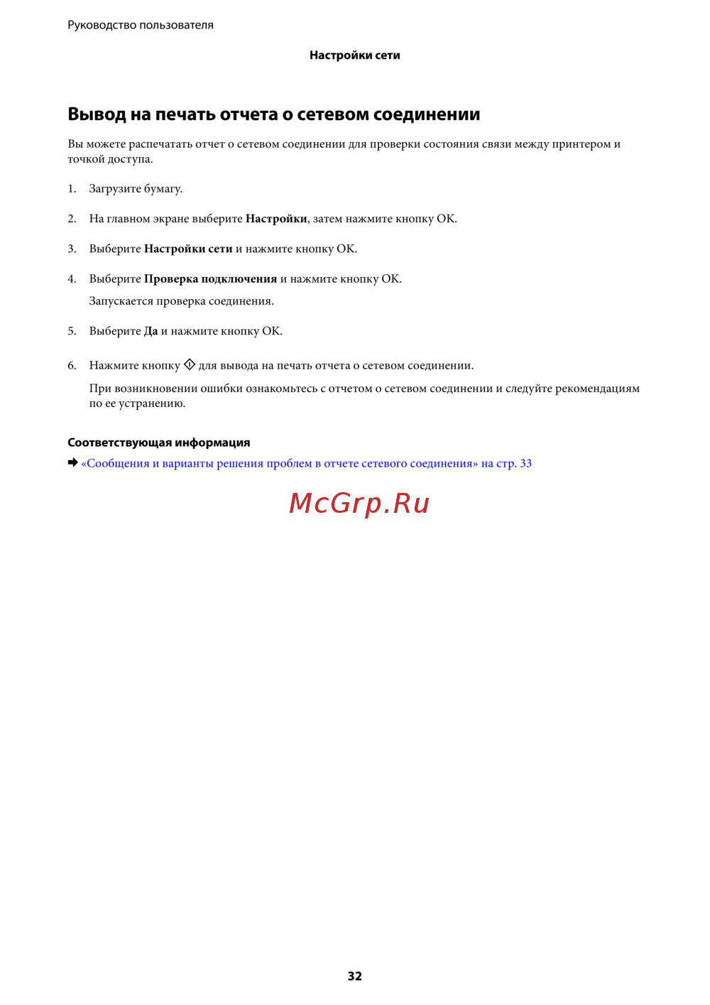 Вы можете распечатать отчет о сетевом соединении для проверки состояния связи между принтером и