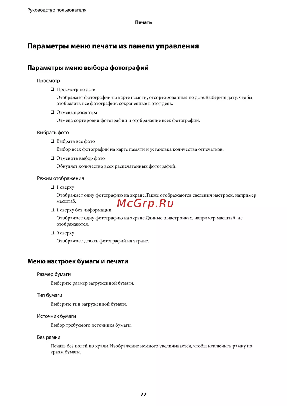 Epson L7180 — настройки меню печати и выбора фотографий для пользователей [77/222]
