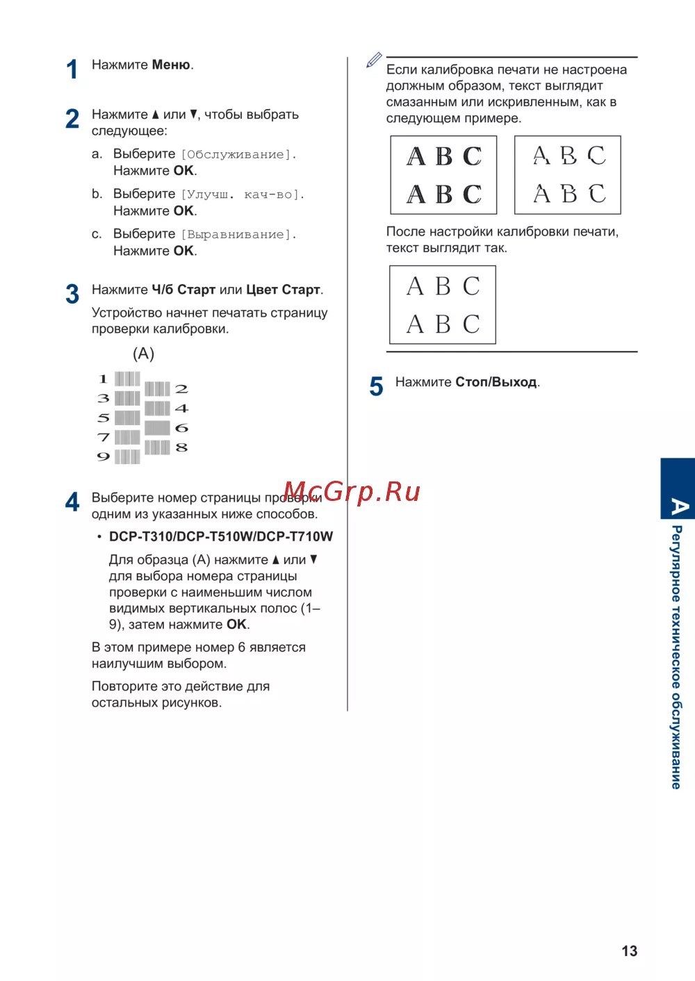 Brother DCP-T510W InkBenefit Plus — инструкция по калибровке печати для устройств [14/22]