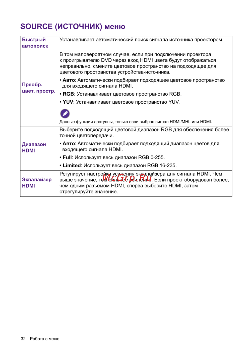 ![Benq MW864UST [32/50] Source источник меню](/views2/1574837/page32/bg20.png)