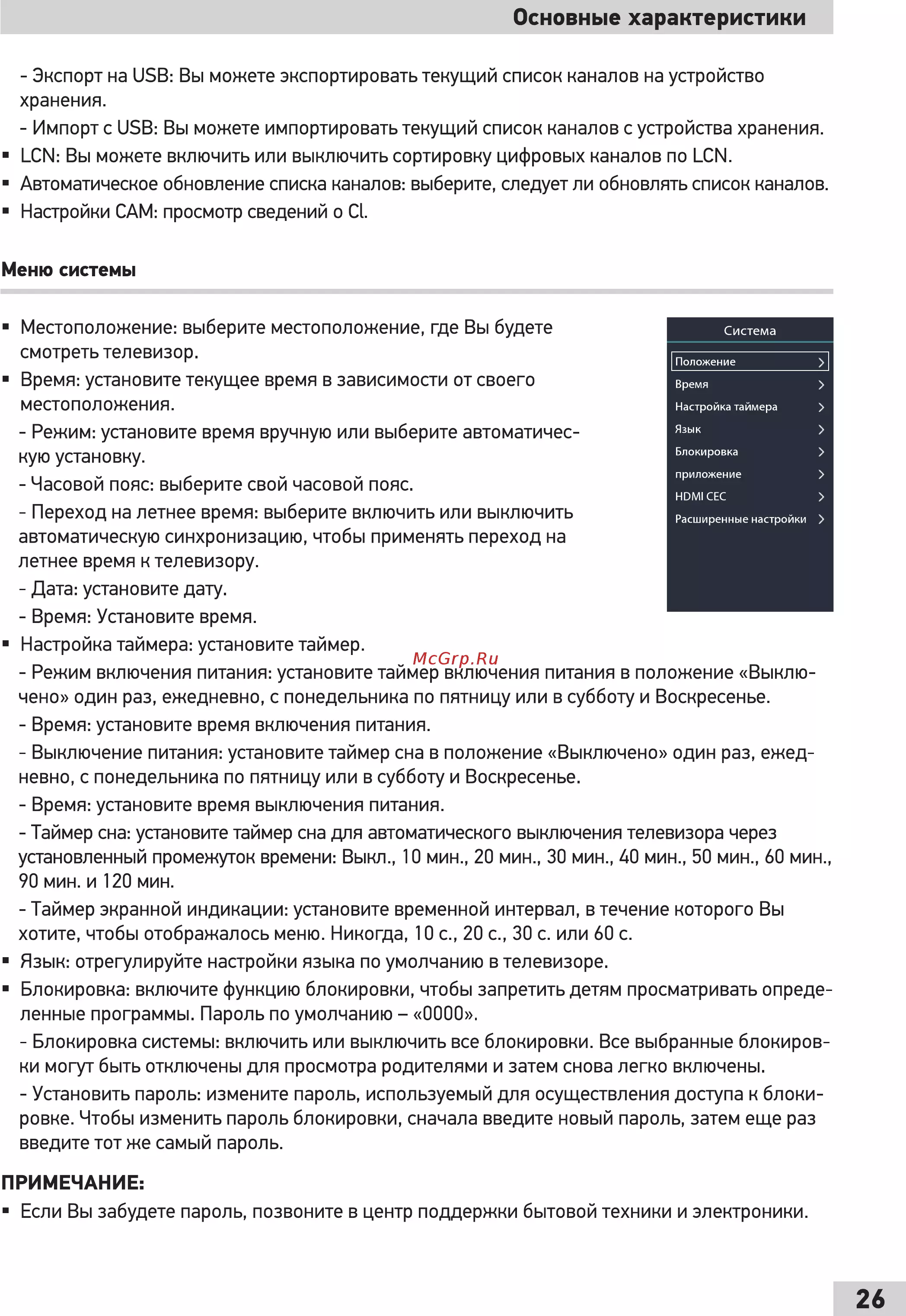 Doffler 43DUS89 — основные характеристики телевизоров: блокировка, управление и настройки [28/40]