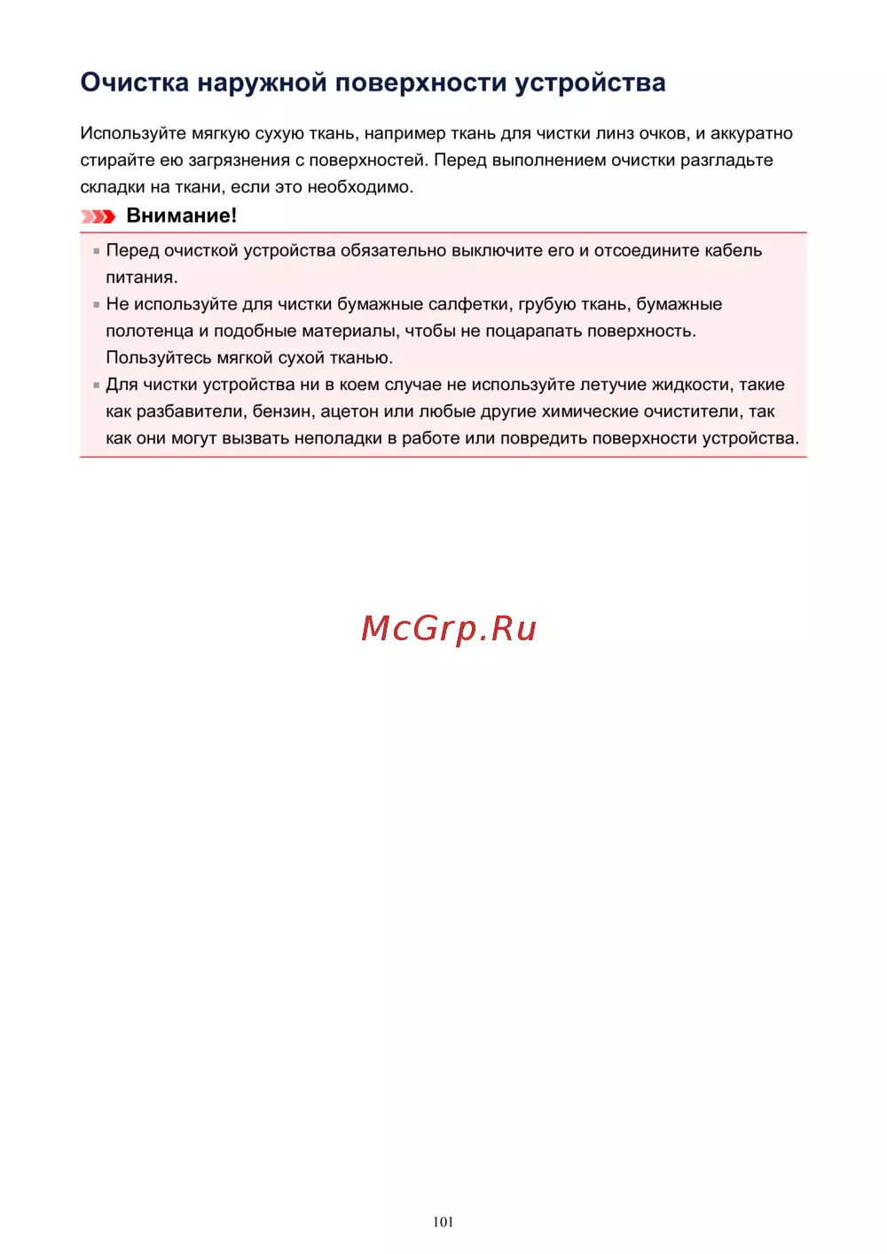 Canon PIXMA MG2545 — правила очистки наружной поверхности устройства [101/638]