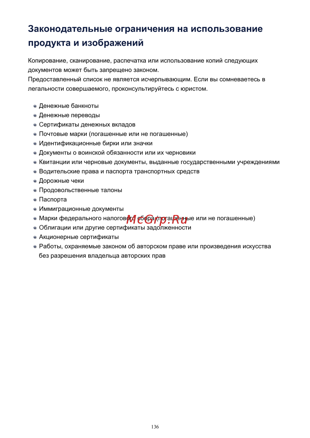 Canon PIXMA MG2545 — законодательные ограничения на использование документов и изображений [136/638]