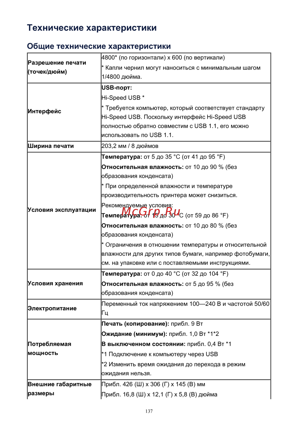 Canon PIXMA MG2545 — технические характеристики принтера: разрешение, интерфейсы и условия [137/638]
