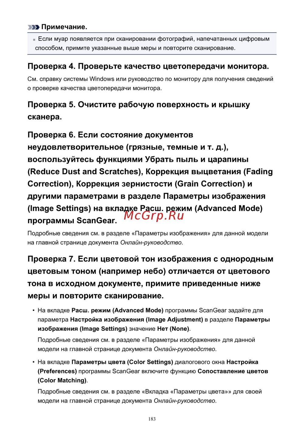 ![Canon PIXMA MG2545 [183/638] Проверка 7 если цветовой тон изображения с однородным цветовым тоном например небо отличается от цветового тона в исходном документе примите приведенные ниже меры и повторите сканирование](/views2/1593749/page183/bgb7.png)