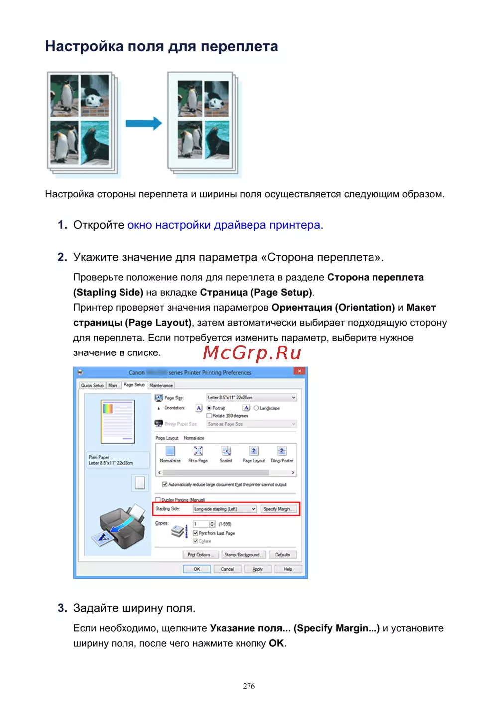 Canon PIXMA MG2545 — настройка полей и стороны переплета для печати [276/638]