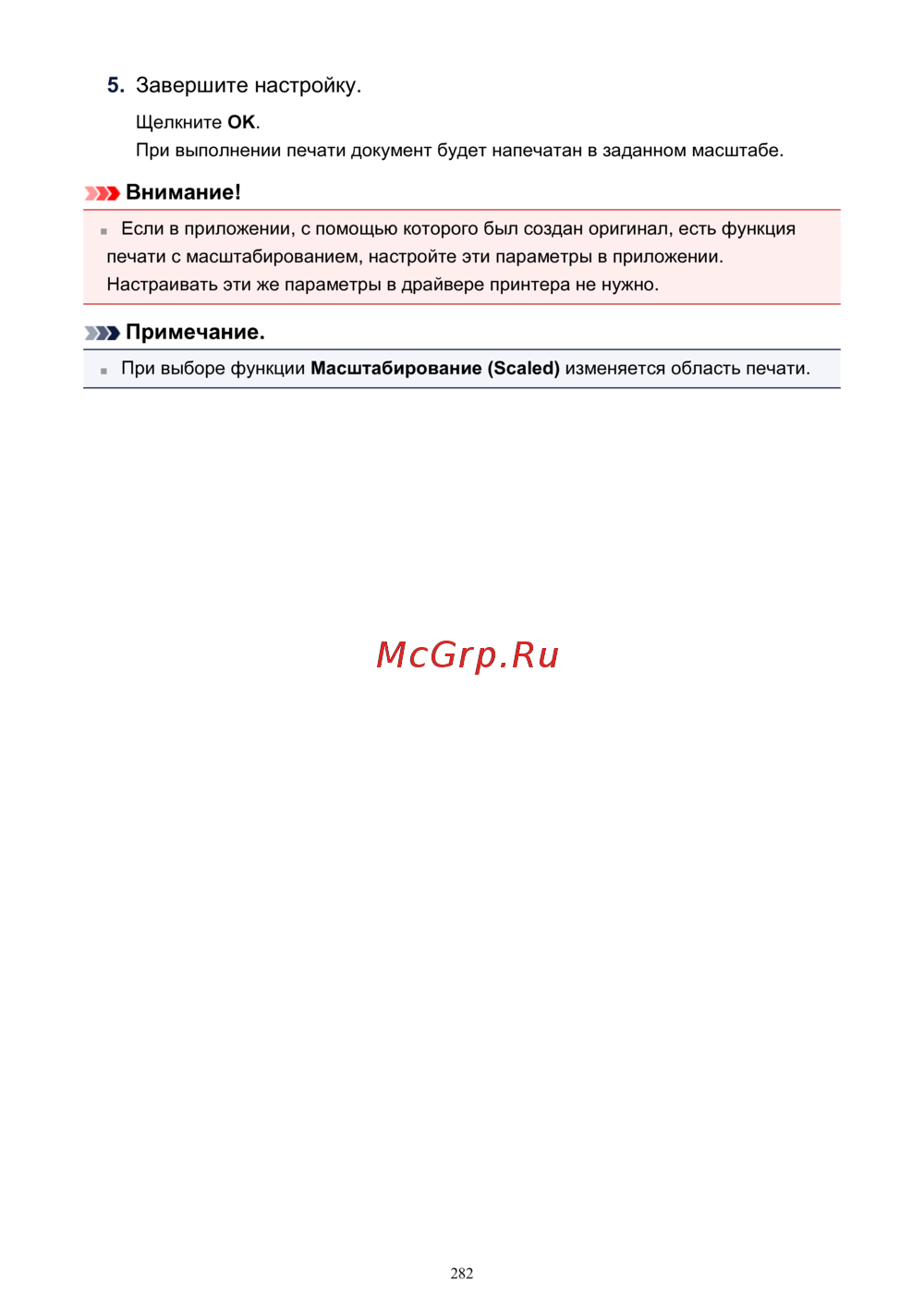 При выборе функции Масштабирование (Scaled) изменяется область печати.