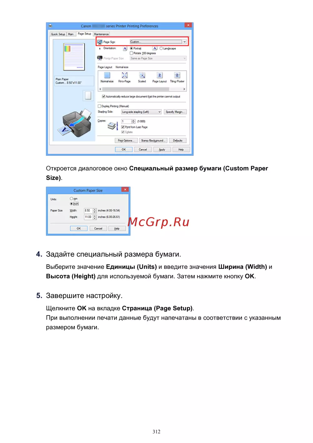 Canon PIXMA MG2545 [312/638] Задайте специальный размера бумаги