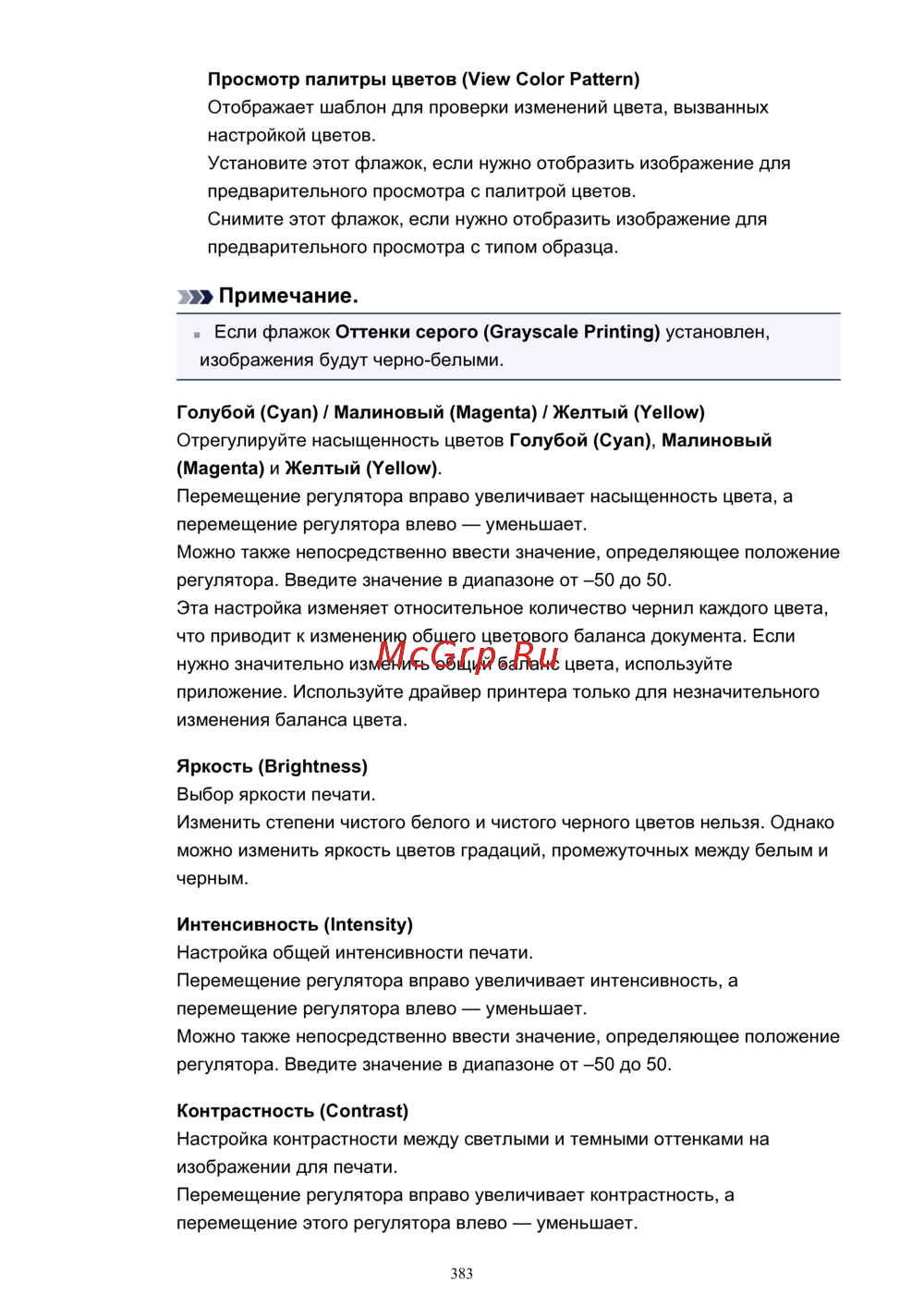 Canon PIXMA MG2545 — настройки цветопередачи для печати: яркость, контрастность и насыщенность [383/638]
