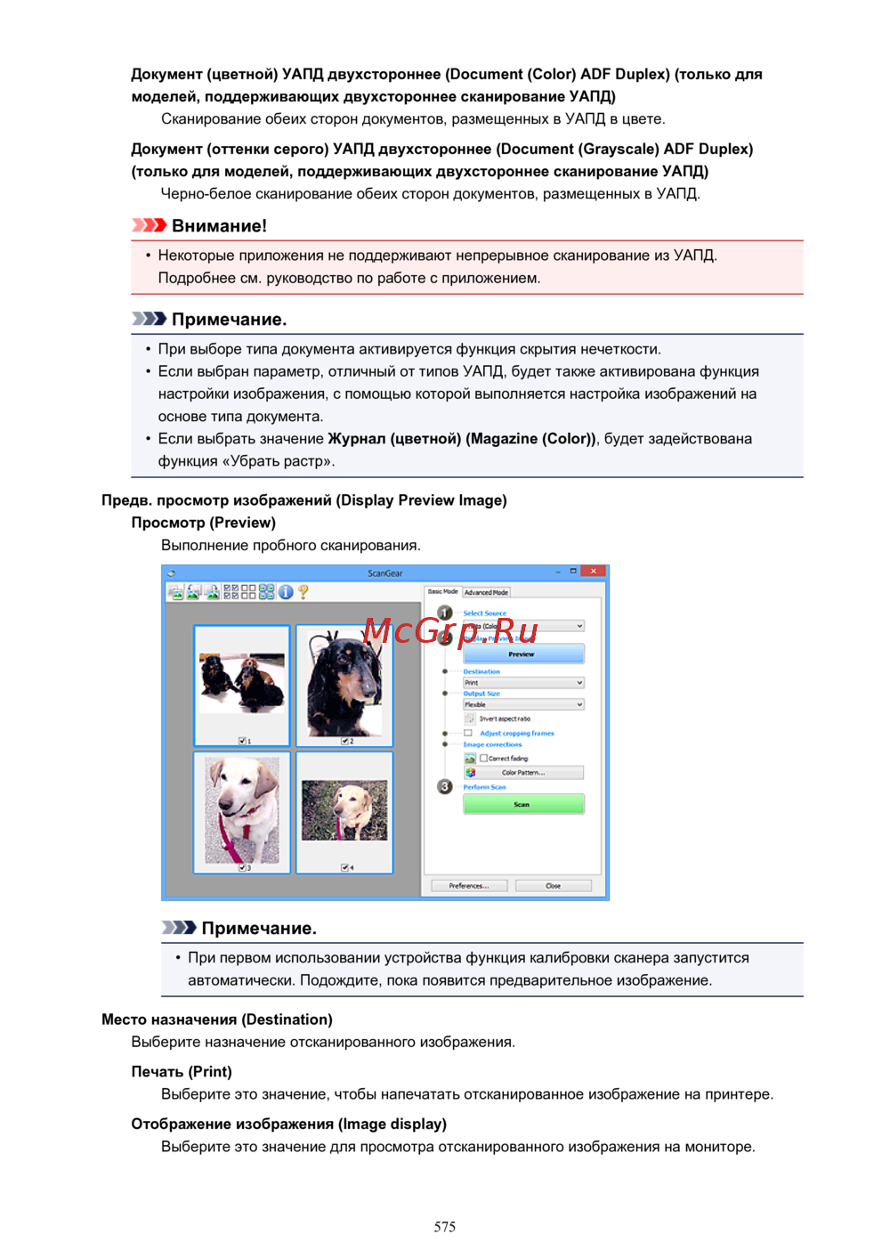 - Если отсканированное изображение будет печататься с увеличением сканируйте с более высоким разрешением чем рекомендовано выше p.625