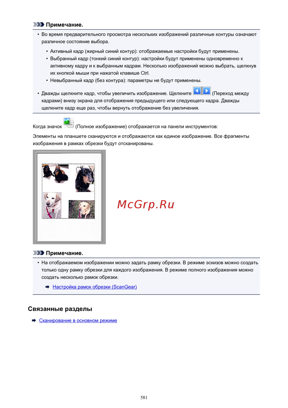 - Настройка рамок обрезки scangear p.615