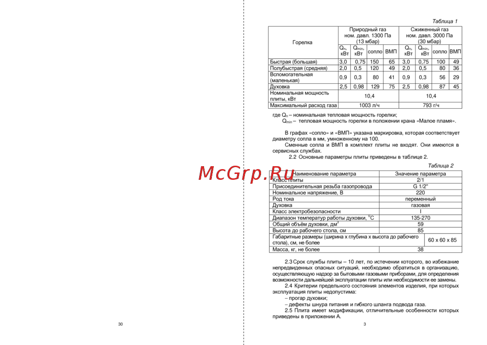 - Мбар или сжиженный газ g30 пропан бутан гост 20448 90 с давлением 3000 па 30 5 мбар перевод плиты с природного на сжиженный газ производится заменой сопел горелок и винтов малого пламени вмп кранов в соответствии с таблицей 1 разделом 17 только соответствующими организациями имеющими лицензию на проведение указанных работ после перенастройки плиты на сжиженный газ необходимо на заднюю стенку плиты наклеить маркировочную табличку поставляемую вместе с комплектом сопел и вмп p.2