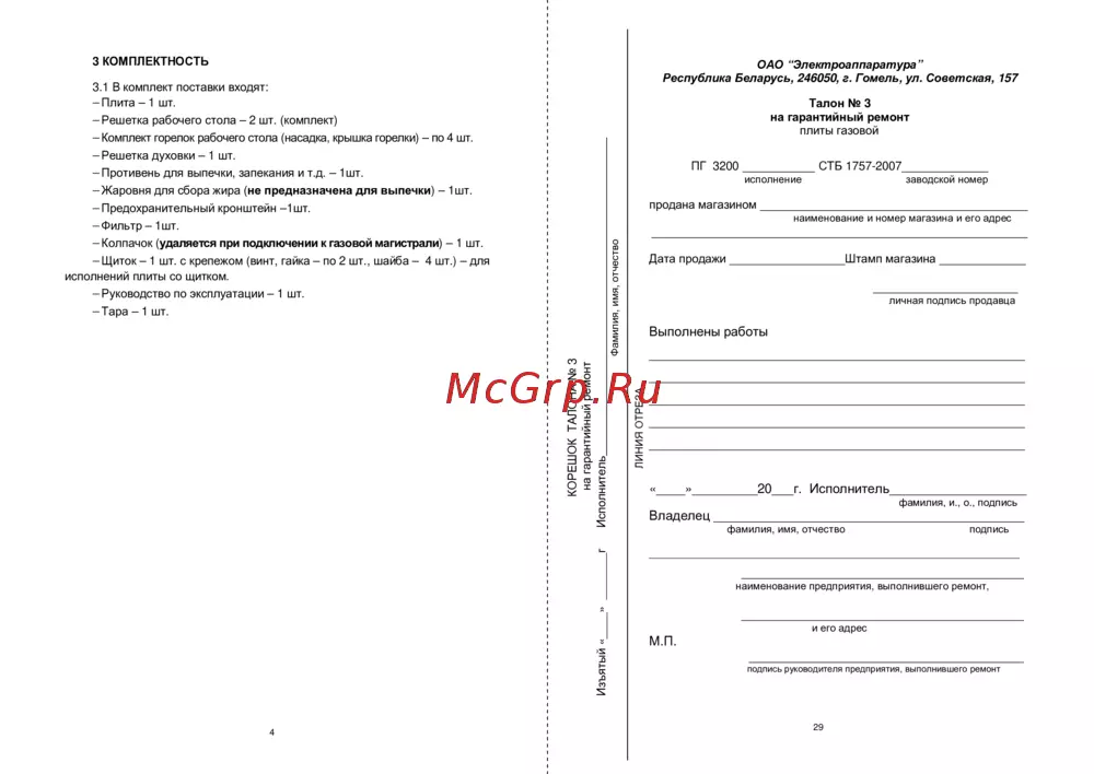 Cezaris ПГ 3200-18 — комплектность газовой плиты: что входит в поставку [4/16]