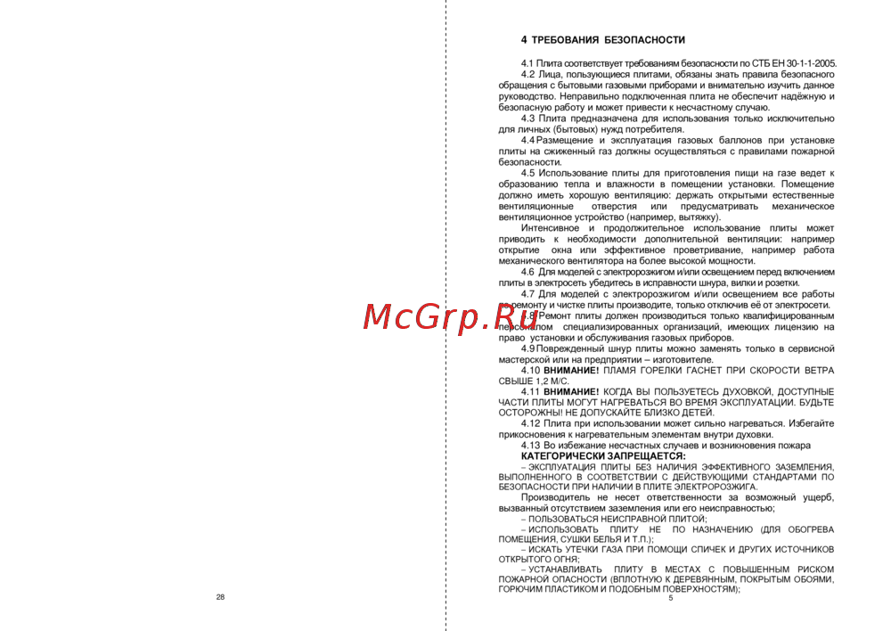 4.1 Плита соответствует требованиям безопасности по СТБ ЕН 30-1-1-2005.