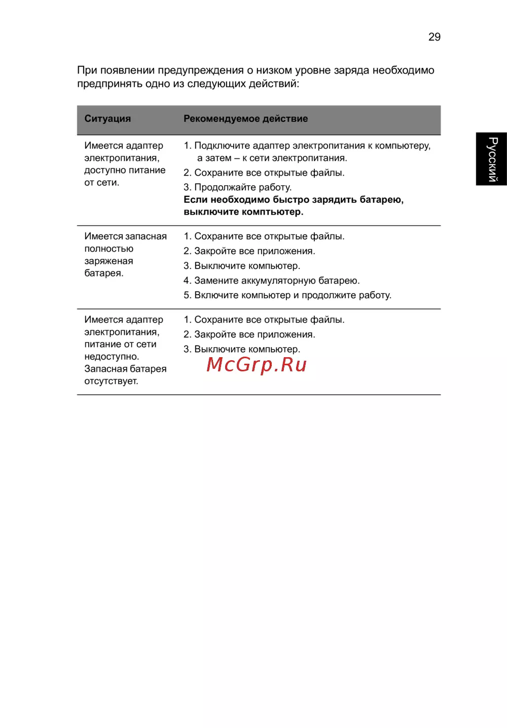 Acer AO722-C68bb — рекомендации при низком уровне заряда батареи компьютера [51/68]